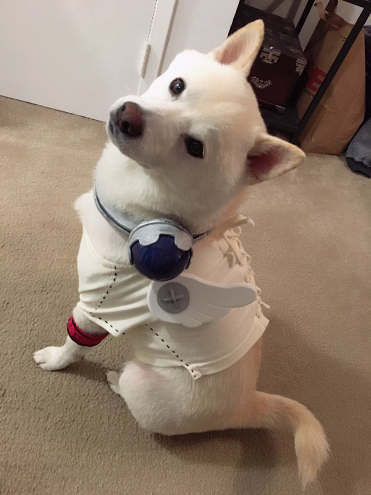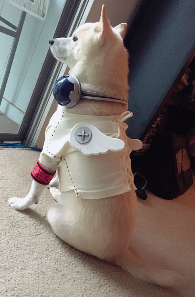 My husband's work was having a Halloween costume contest not only for employees, but for their pets as well! I had been wanting to make this costume for Jinro ever since I laid my eyes on Koromaru in Persona Q. I just thought my precious doggie would be perfect for cosplaying Koromaru!
